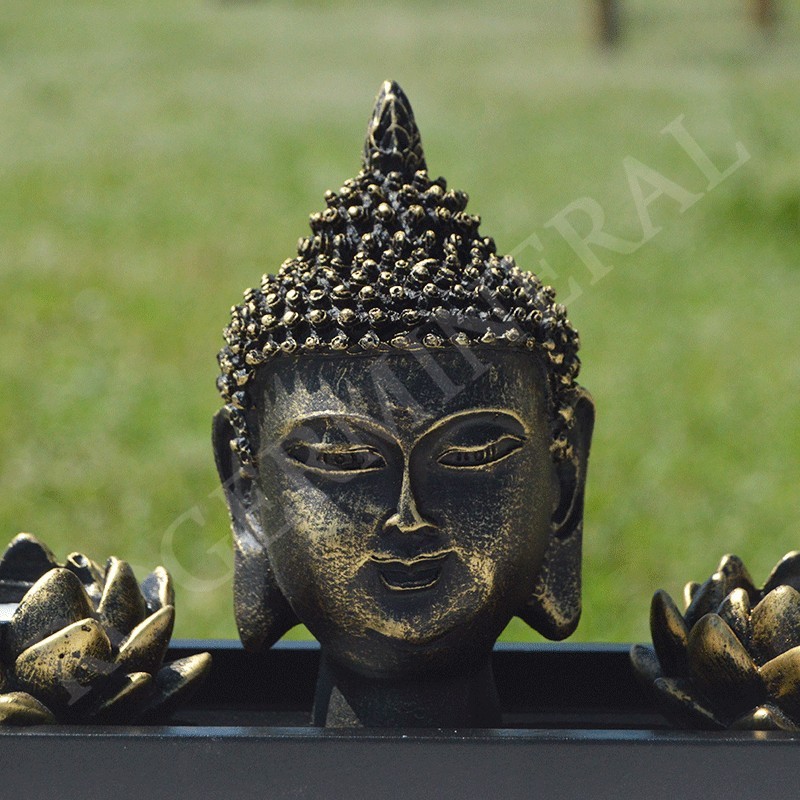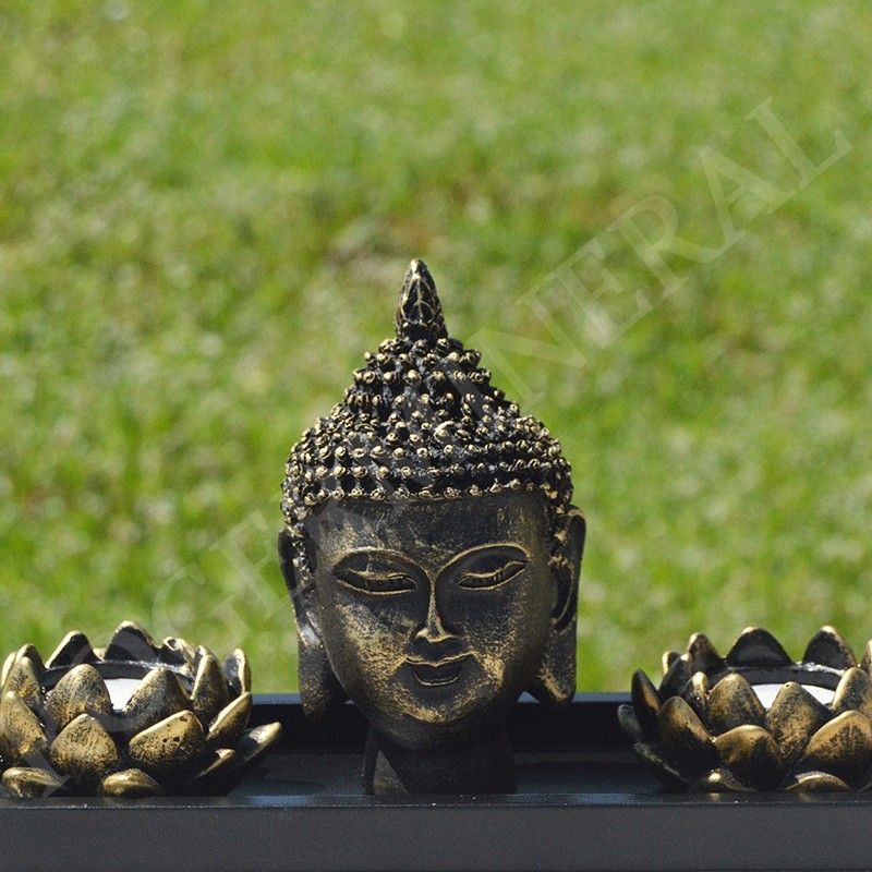 Bouddha or résine avec supports bougie en forme de fleurs de lotus