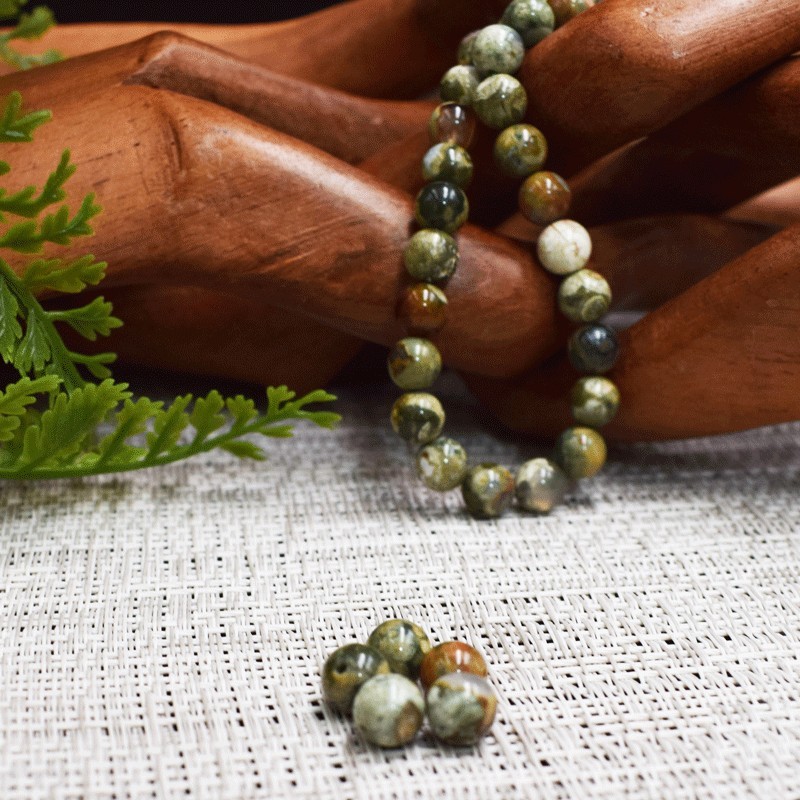 Nous vous proposons des perles rondes de Jaspe vert naturelles à l'unité, diamètre 8mm.