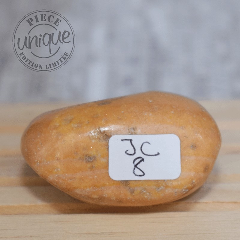 Le Jaspe est un dioxyde de silicium, composition chimique SiO2. Le jaspe est une roche sédimentaire ou volcanique contenant de 80 à 95 % de silice, souvent classée avec les quartz microcristallins mais qui peut aussi contenir de l'argile. Sa couleur est très variée: blanc, beige, rouge, vert, marron voire rosé, noir , bleuté...