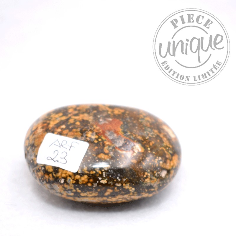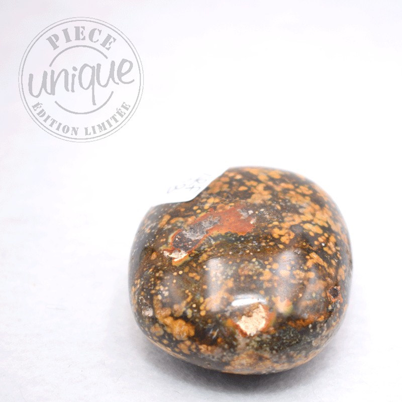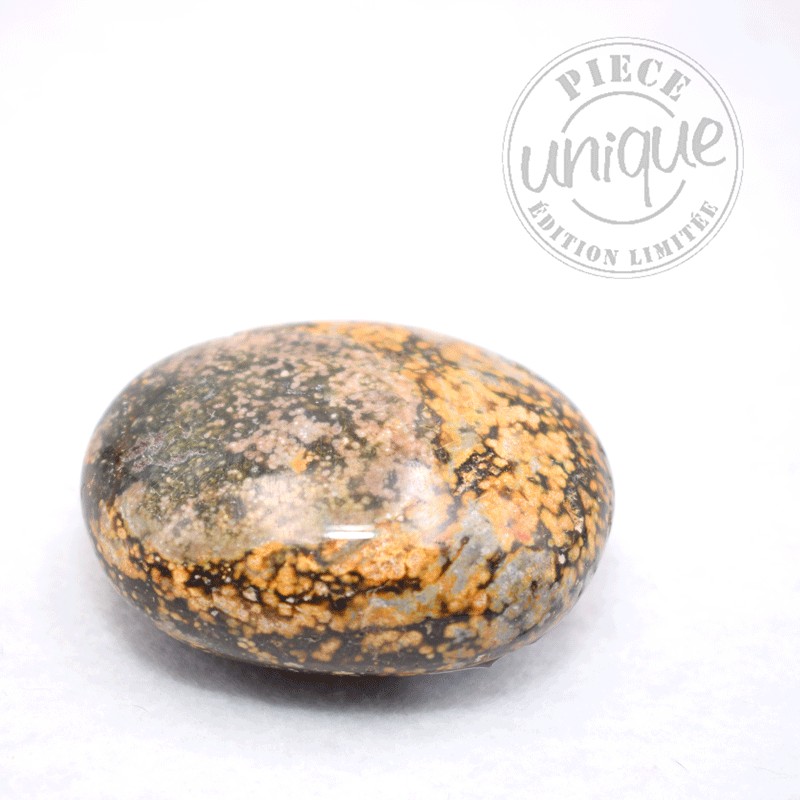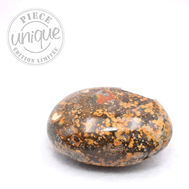 Ce jaspe en particulier offre de par ces dessins la symbolique du mouvement. de par sa couleur il est relié aux chakras principalement 3 et 4 (plexus solaire, cœur...)