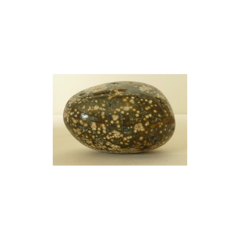 Ce jaspe en particulier offre de par ces dessins la symbolique du mouvement. de par sa couleur il est relié aux chakras principalement 3 et 4 (plexus solaire, cœur...)