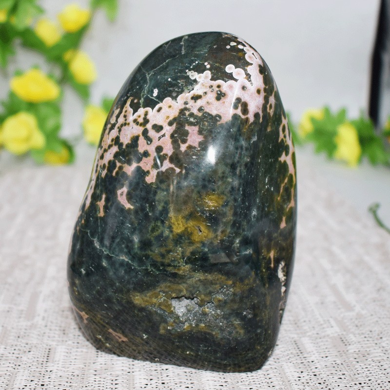 Très beau jaspe océan orbiculaire en forme libre.
