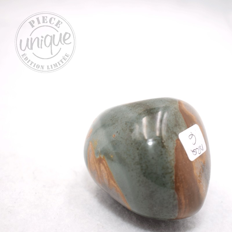 Le nom de ces Jaspe polychrome vient de ses différentes couleurs sur une même pierre, elle offre des dessins où l'imagination peut s'exprimer pleinement.
