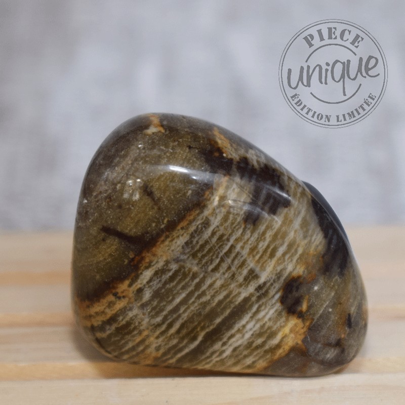Pierre d'équilibre par excellence, comme tous les jaspes de cette grande famille, ce jaspe offre une ouverture d'esprit, fécondes les idées, la créativité, son aspect invite au voyage intérieur, à aller à la découverte des ses propres capacités d'invention, de réalisation.
