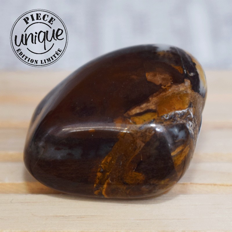 Pierre d'équilibre par excellence, comme tous les jaspes de cette grande famille, ce jaspe offre une ouverture d'esprit, fécondes les idées, la créativité, son aspect invite au voyage intérieur, à aller à la découverte des ses propres capacités d'invention, de réalisation.