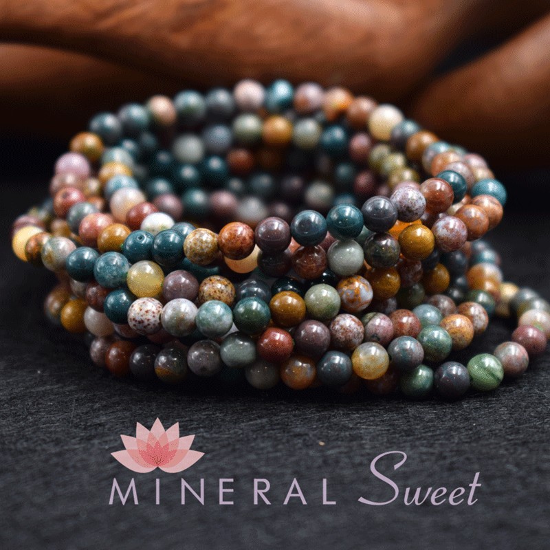 Beau bracelet pour enfant en Jaspe polychrome, perles rondes de 4mm.