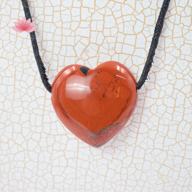 Pendentif coeur en Jaspe rouge, vendu avec son cordon.