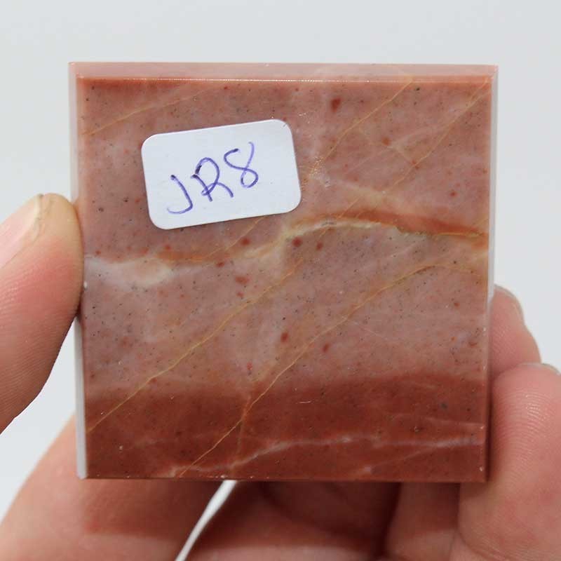 Le Jaspe est un dioxyde de silicium, composition chimique SiO2. Le jaspe est une roche sédimentaire ou volcanique contenant de 80 à 95 % de silice, souvent classée avec les quartz microcristallins mais qui peut aussi contenir de l'argile. Sa couleur est très variée: blanc, beige, rouge, vert, marron voire rosé, noir , bleuté...