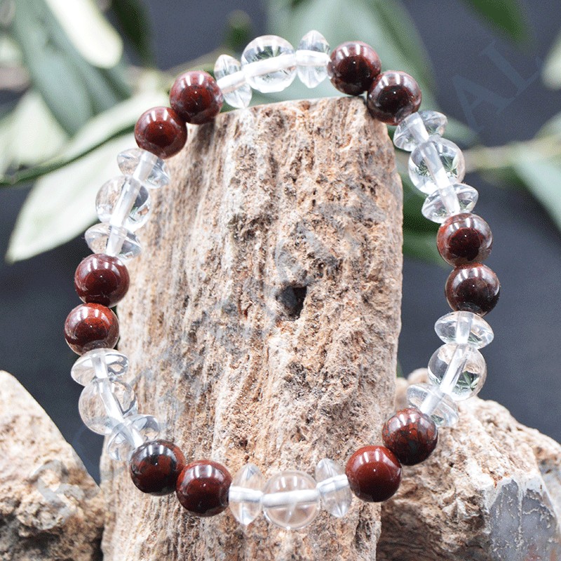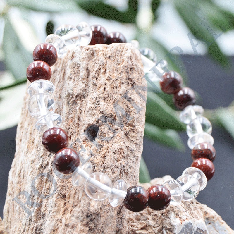 Bracelet en Jaspe Brechique et Cristal de Roche.