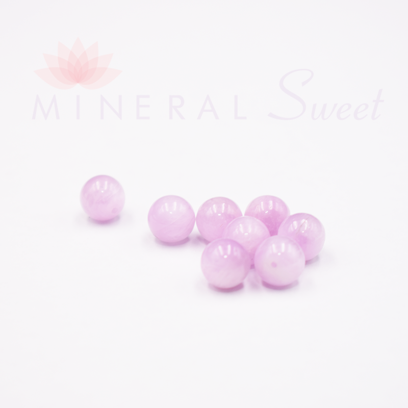 Nous vous proposons des perles rondes de Kunzite naturelles à l'unité, diamètre 8mm.