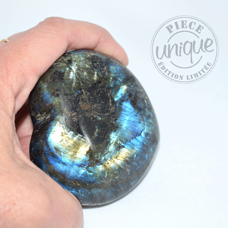 La Labradorite avec son irisation particulière est une aide pour dissiper le voile sombre des illusions résultant souvent de croyances obsolètes et des blocages, qui amènent à reproduire en boucle des schémas qui ne correspondent plus à la réalité, aujourd'hui, et, qui ne répondent plus aux besoins essentiels du moment.