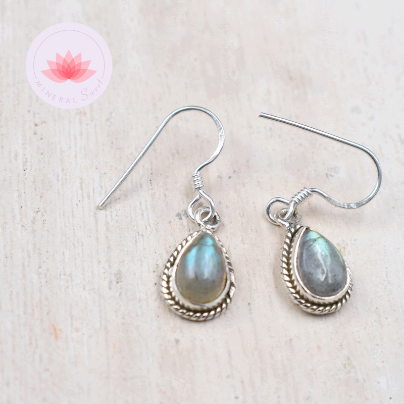 Boucle d'oreille en Labradorite et argent.