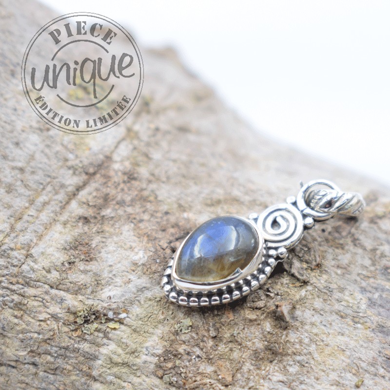 Très joli pendentif de labradorite, de première qualité,serti argent 925.