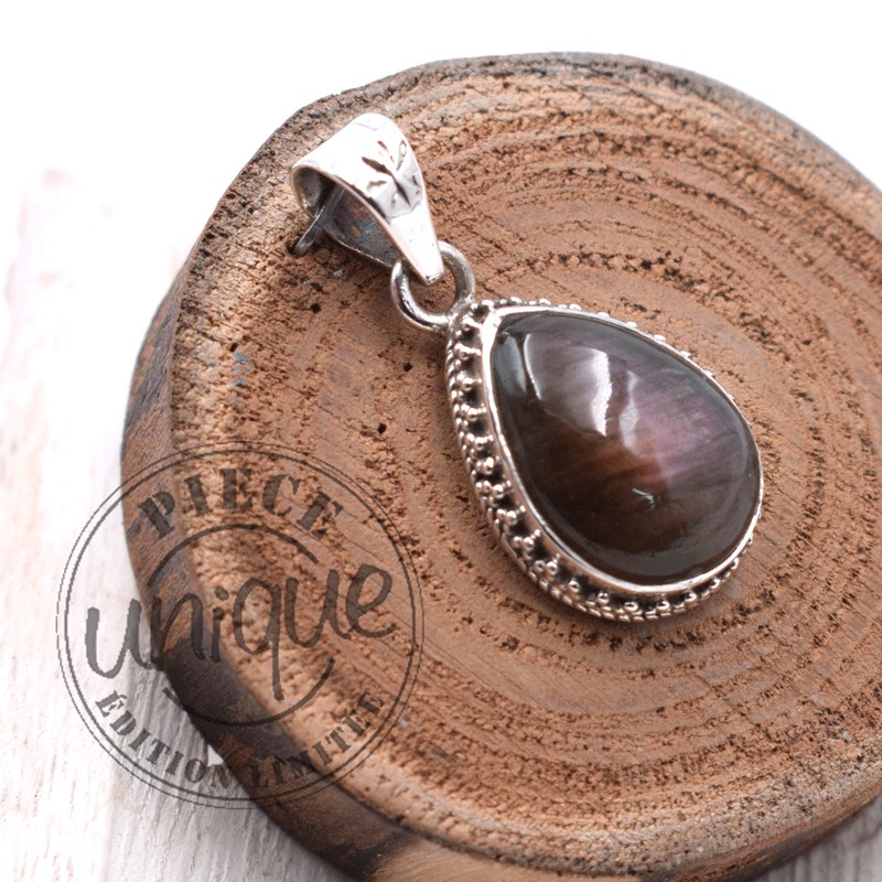 Très joli pendentif de labradorite violette, de première qualité,serti argent 925.