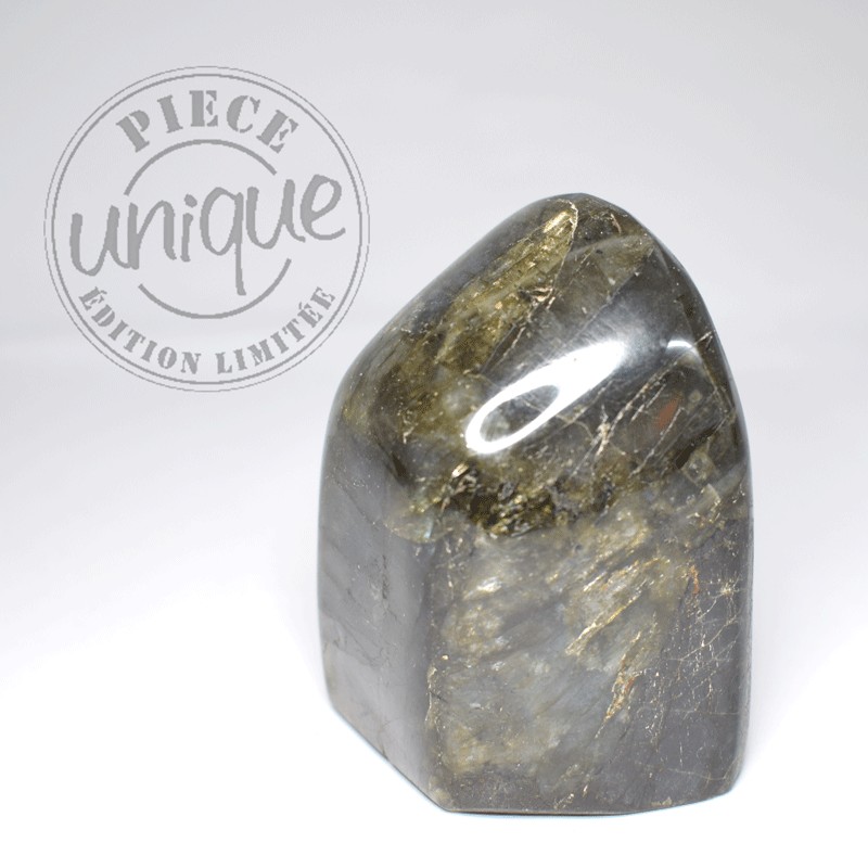 La Labradorite avec son irisation particulière est une aide pour dissiper le voile sombre des illusions résultant souvent de croyances obsolètes et des blocages, qui amènent à reproduire en boucle des schémas qui ne correspondent plus à la réalité, aujourd'hui, et, qui ne répondent plus aux besoins essentiels du moment.