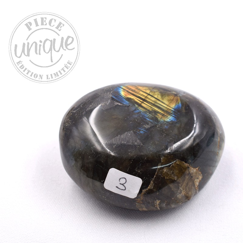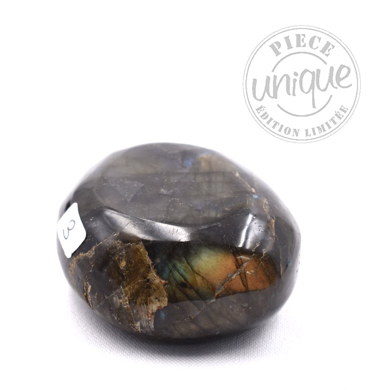 La Labradorite avec son irisation particulière est une aide pour dissiper le voile sombre des illusions résultant souvent de croyances obsolètes et des blocages, qui amènent à reproduire en boucle des schémas qui ne correspondent plus à la réalité, aujourd'hui, et, qui ne répondent plus aux besoins essentiels du moment.