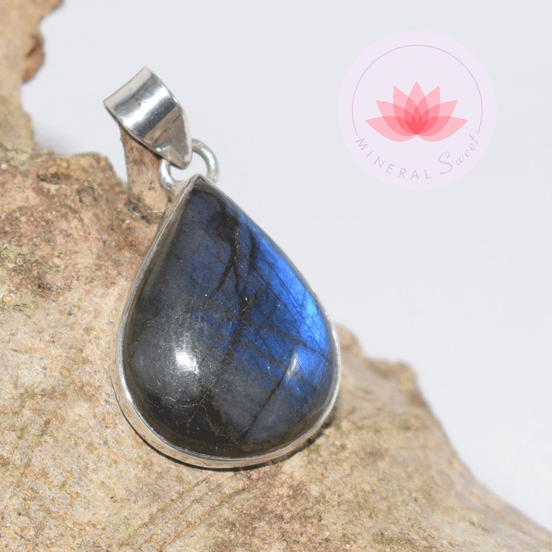 Très joli pendentif de labradorite, de première qualité,serti argent 925.