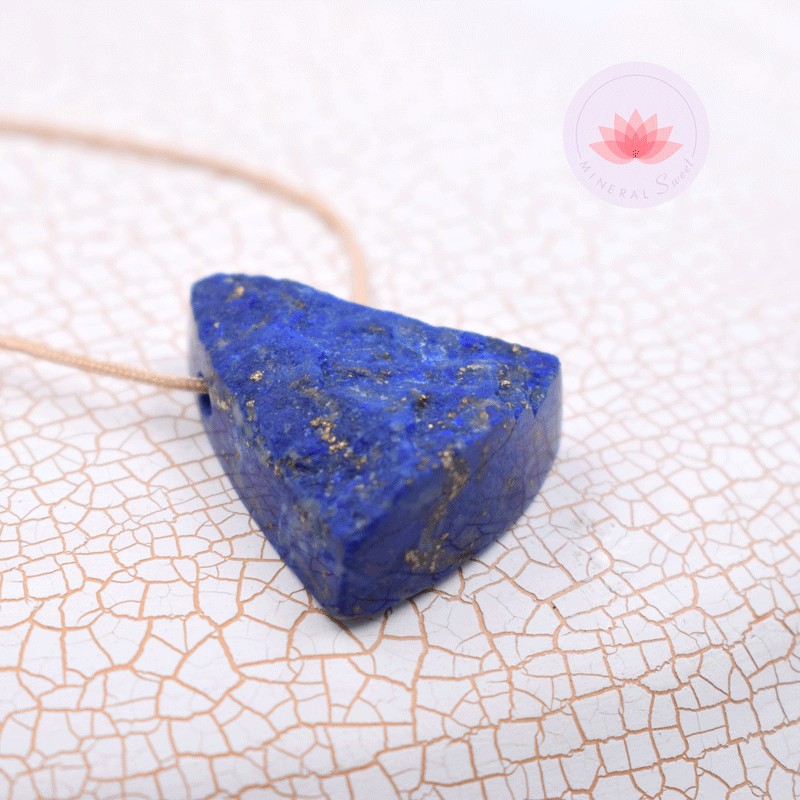 Beau pendentif en Lapis lazuli demi-poli avec un cordon en couleur naturelle.