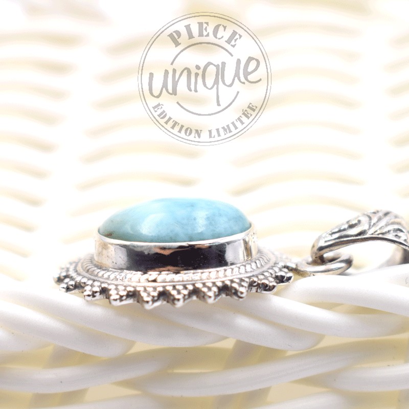 Pendentif en Larimar serti argent baroque de 925