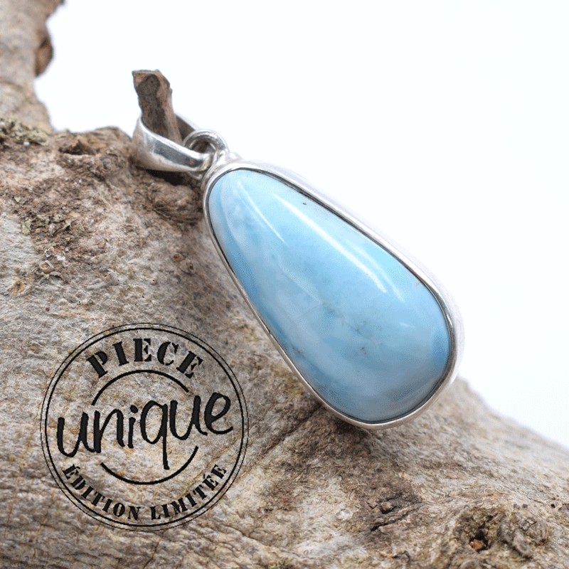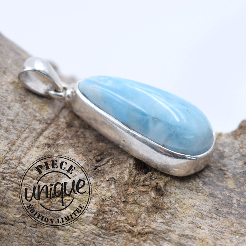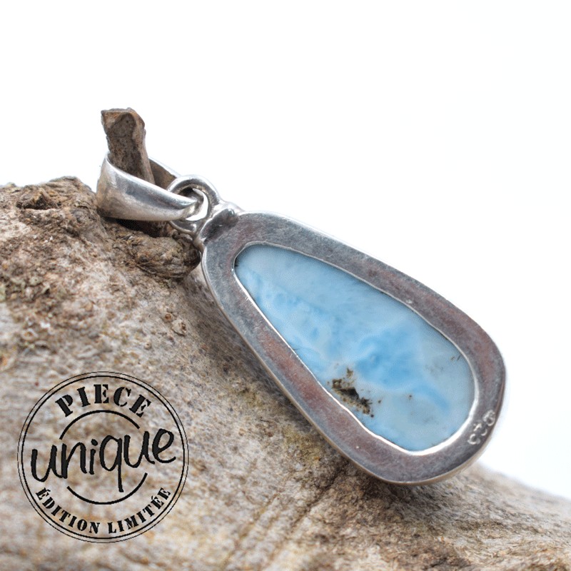 Pendentif Larimar serti argent.