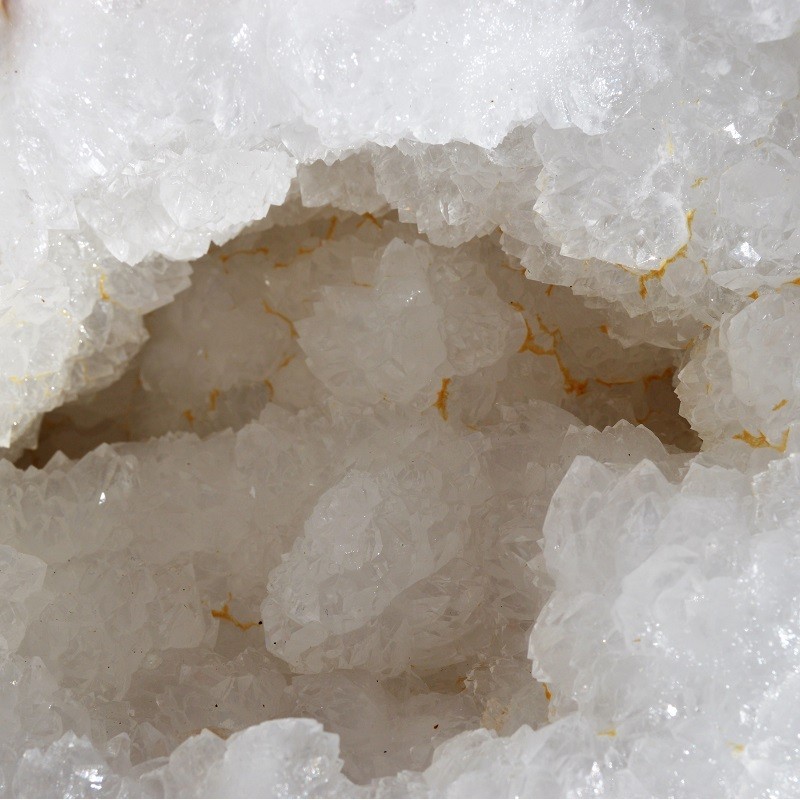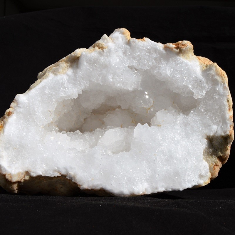 Géode complète de Calcite blanche, ouverte qui laisse appraître la fine cristallisation qui la compose, d'une blancheur immaculée !