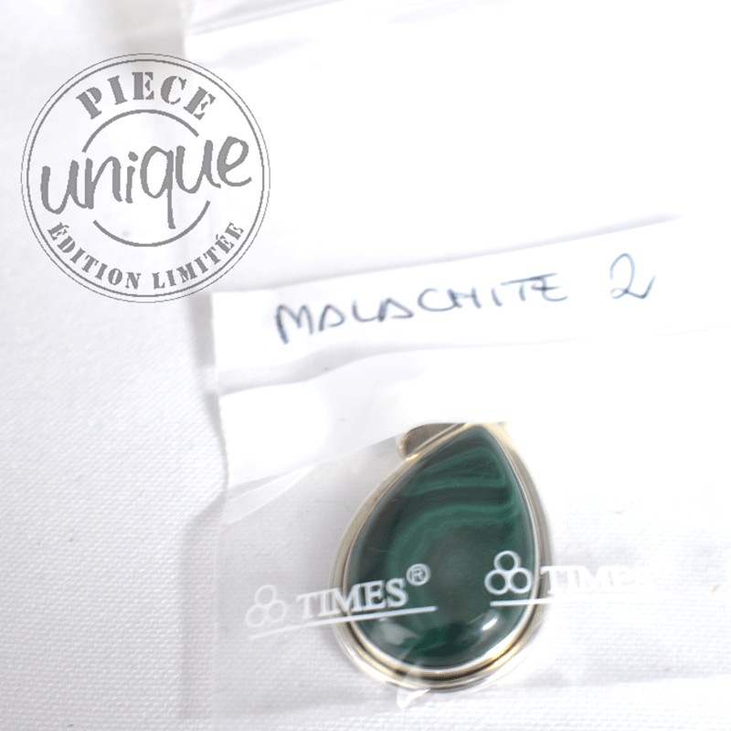 Très beau pendentif de Malachite serti argent de 925.