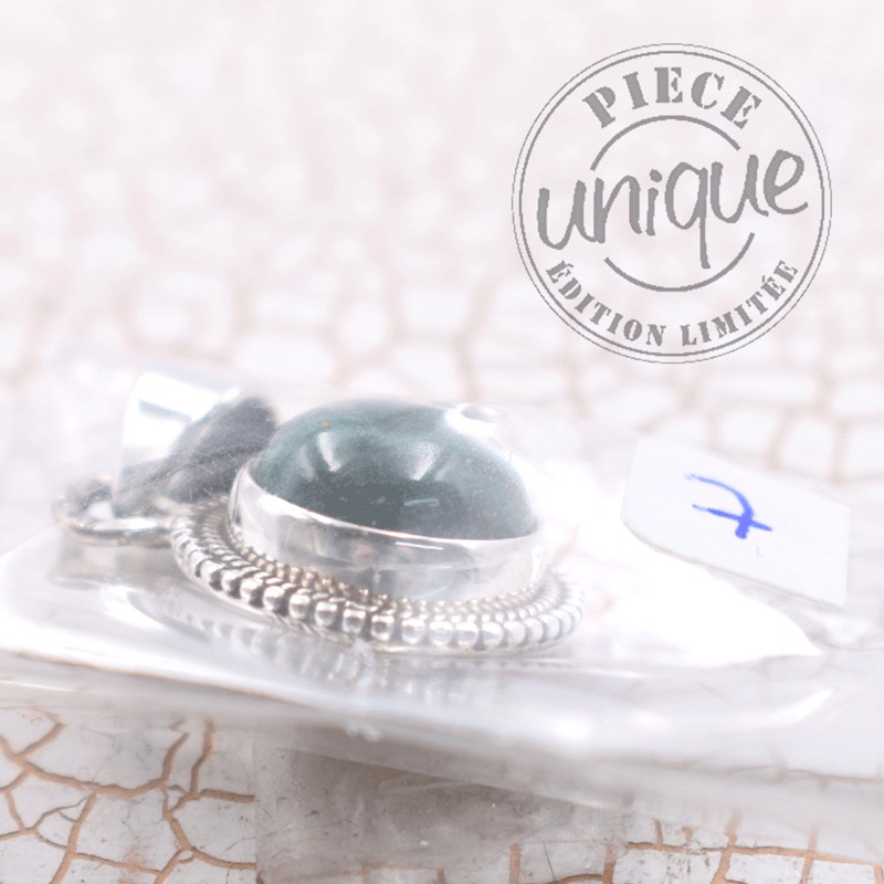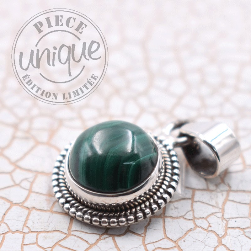 Très beau pendentif de Malachite en forme ronde serti argent.