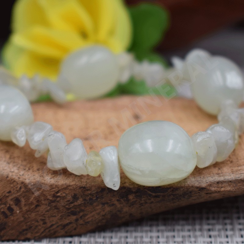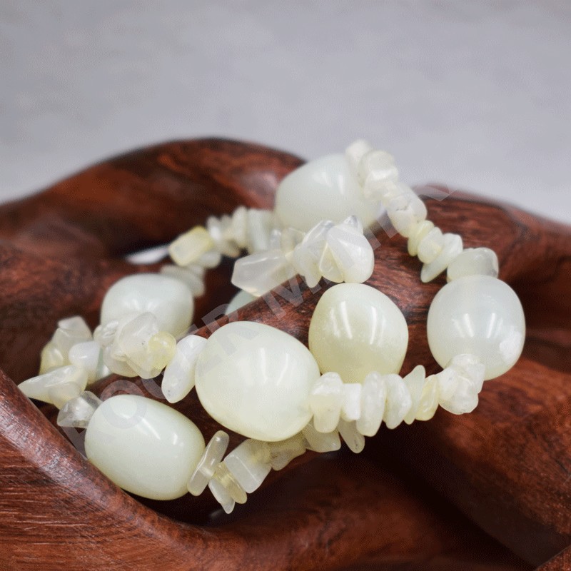 Joli bracelet de Jade en alternance de petites perles "chips" et pierres roulées.