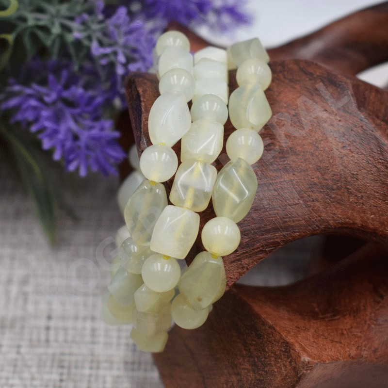 Très joli bracelet en Jade avec des perles rondes et perles taillées