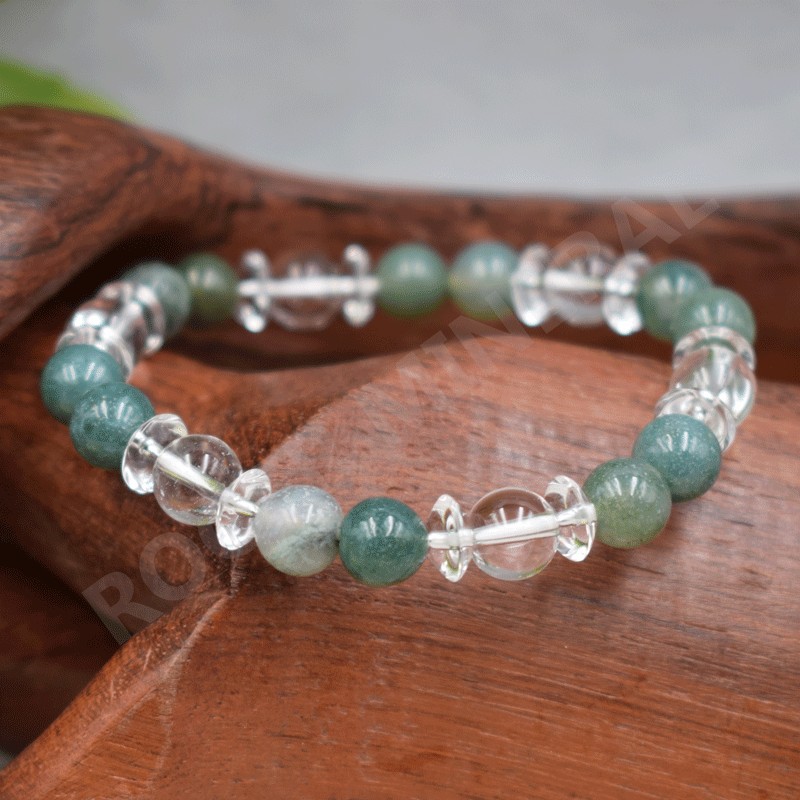 Bracelet Cristal de roche et Agate mousse