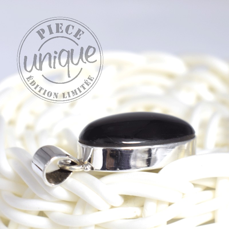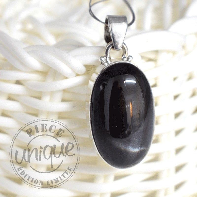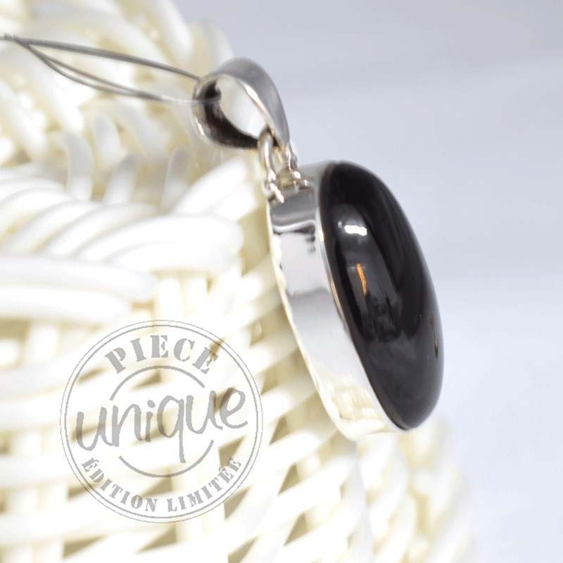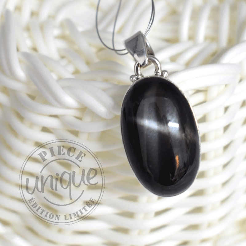 Pendentif en Diopside noir étoilé, Black Star, serti argent.
