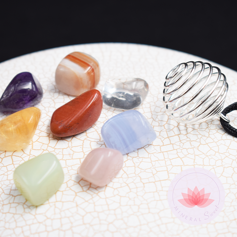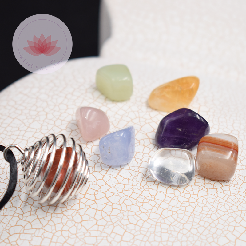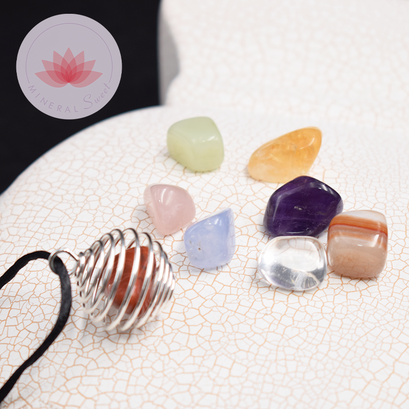 Support métallique spirale + Les pierres des 7 Chakkras:
