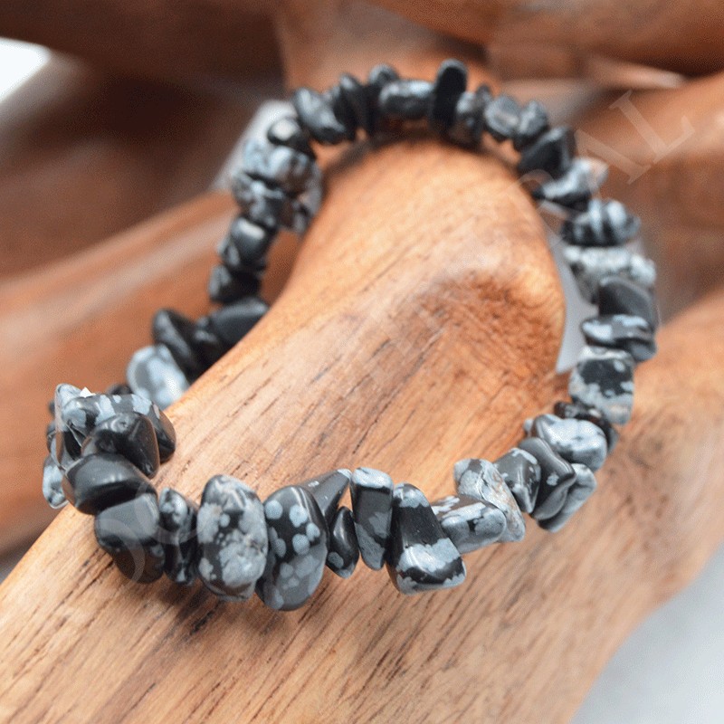 Bracelet d'Obsidienne dite "flocon de neige", petites perles "chips" ou autrement appelées "baroques"