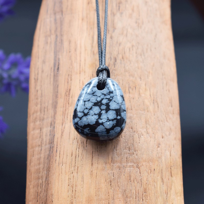 L'obsidienne flocon de neige, ou mouchetée, est depuis longtemps considérée comme une pierre de protection, d'équilibre, donnant de l'élan.