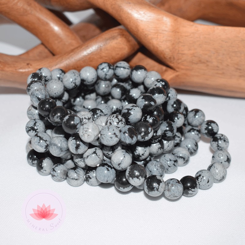 L'obsidienne flocon de neige, ou mouchetée, est depuis longtemps considérée comme une pierre de protection, d'équilibre, donnant de l'élan.