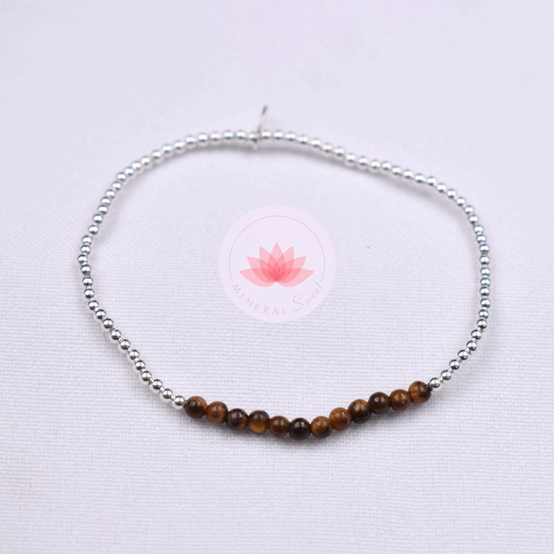 Bracelet en petites perles d'Oeil de tigre et argent.