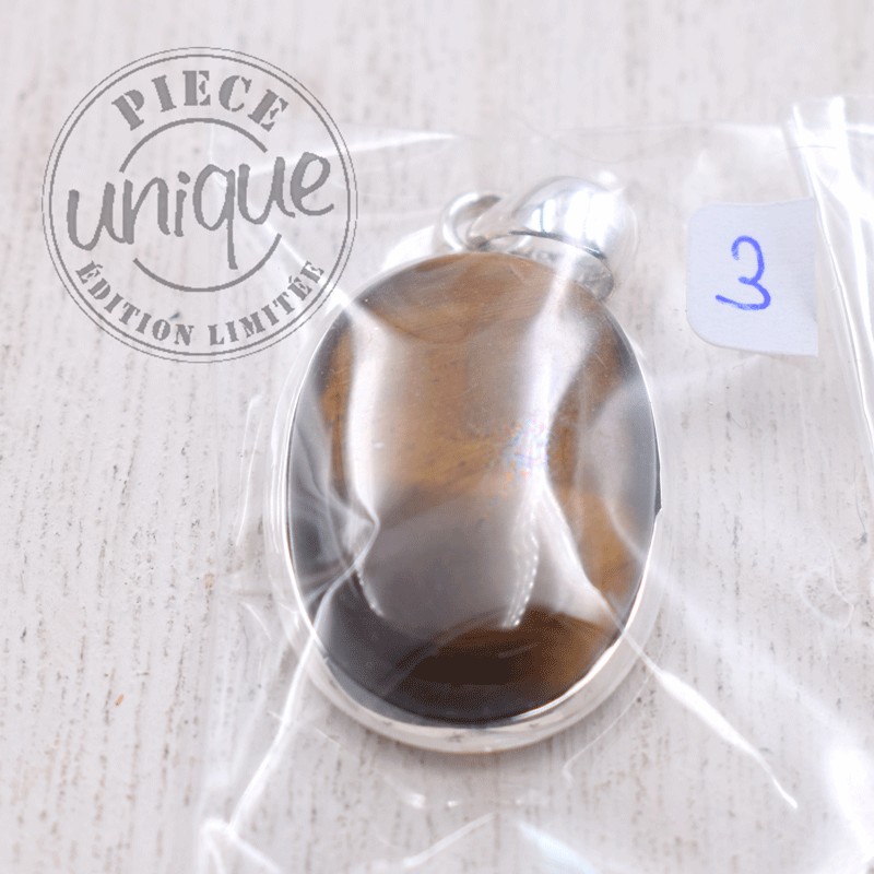 L'Œil de Tigre est un minéral de la famille des quartzites, un dioxyde de silicium, de composition chimique: SiO2. Il est dit de cette pierre qu'elle est fibreuse, d'où son aspect chatoyant.