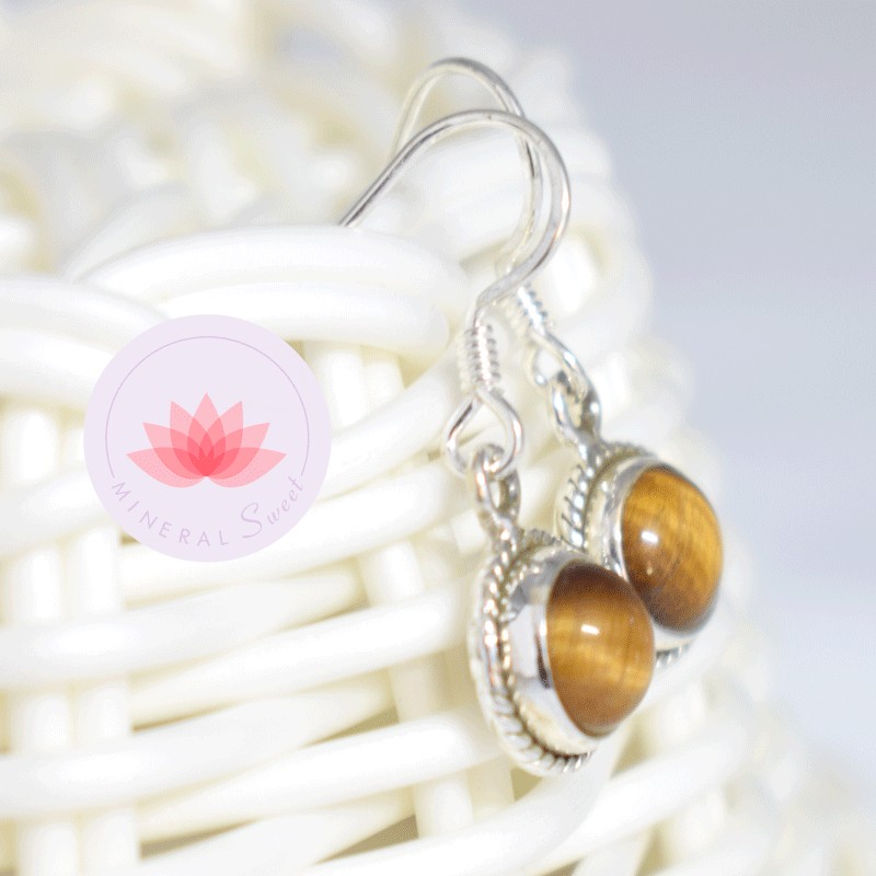 Boucles d'oreilles en Oeil de Tigre sertissage argent de 925.