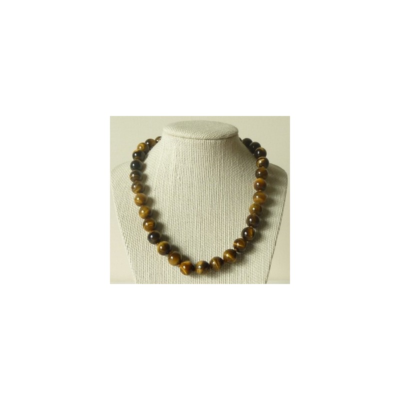 Collier en Oeil de Tigre perles rondes 12mm, 45cm de très belle qualité, différentes tailles de perles sont disponibles