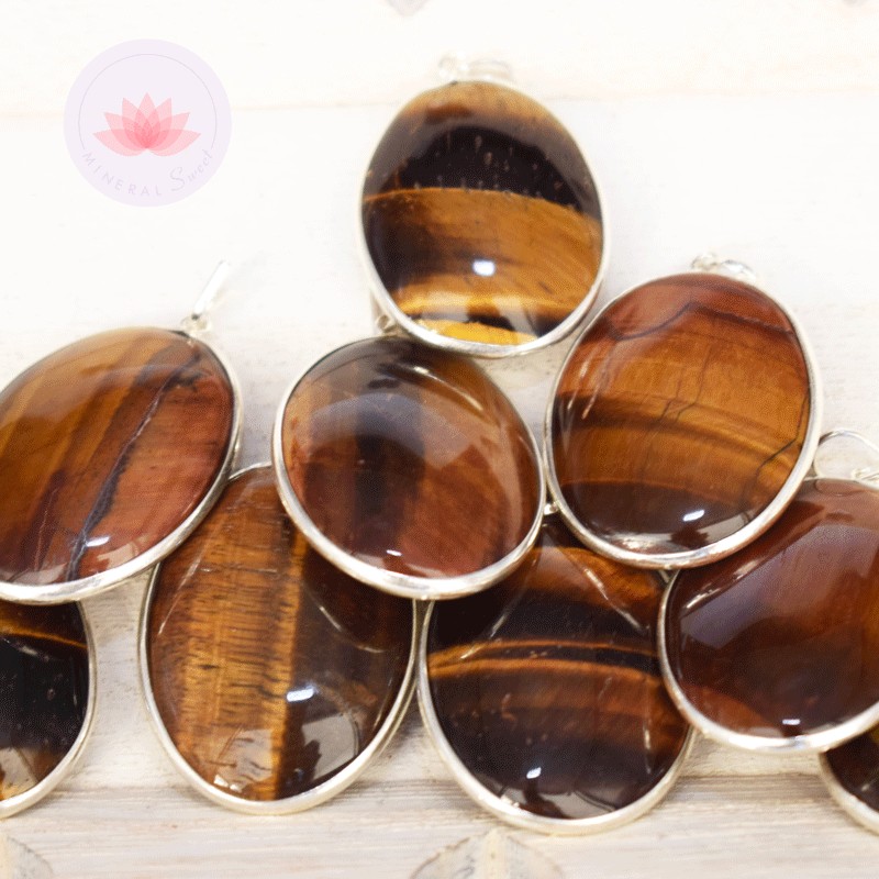 Pendentif Oeil de Tigre Biterminé serti metal...