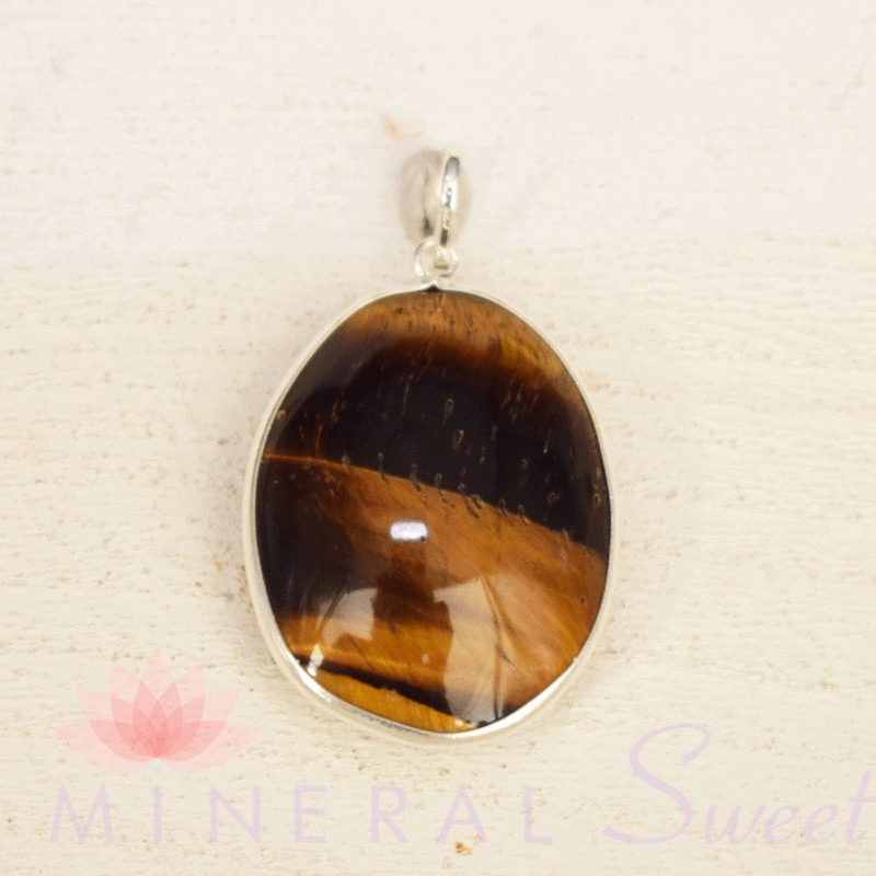 L'Œil de Tigre est un minéral de la famille des quartzites, un dioxyde de silicium, de composition chimique: SiO2. Il est dit de cette pierre qu'elle est fibreuse, d'où son aspect chatoyant.