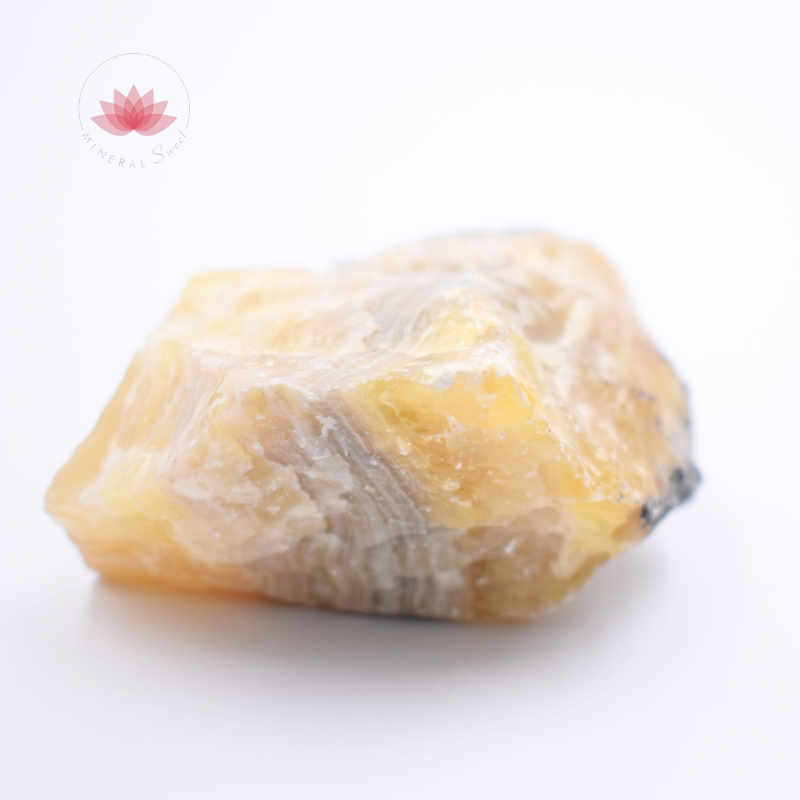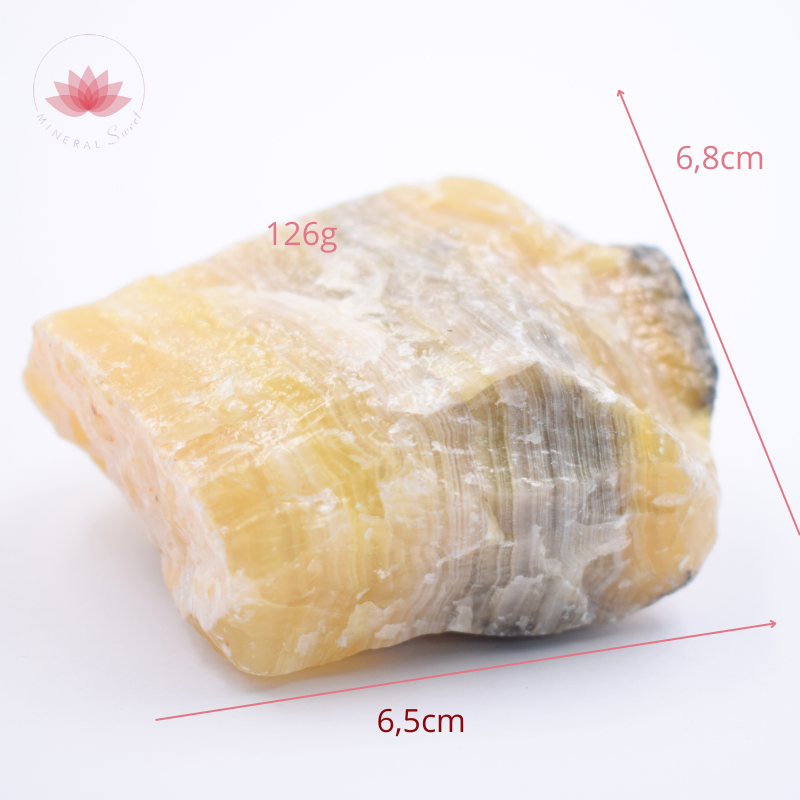 Cette belle combinaison de deux minéraux que sont l’aragonite et la calcite font de cette pierre un atout de douceur, de tempérance, de confiance, de stabilité émotionnelle.