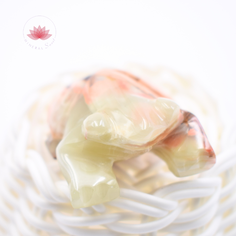 Cette belle combinaison de deux minéraux que sont l’aragonite et la calcite font de cette pierre un atout de douceur, de tempérance, de confiance, de stabilité émotionnelle.
