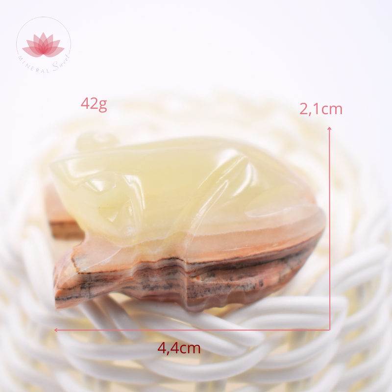 Cette belle combinaison de deux minéraux que sont l’aragonite et la calcite font de cette pierre un atout de douceur, de tempérance, de confiance, de stabilité émotionnelle.