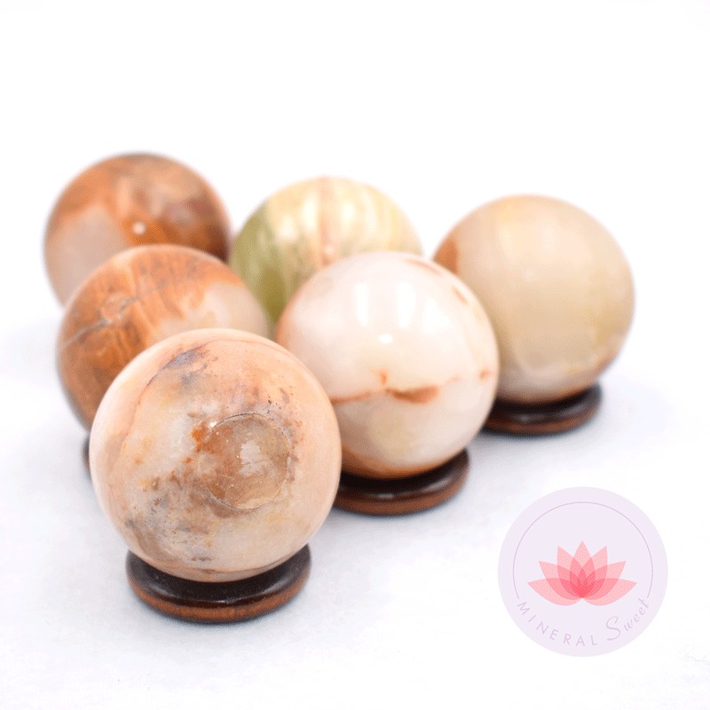 Cette belle combinaison de deux minéraux que sont l’aragonite et la calcite font de cette pierre un atout de douceur, de tempérance, de confiance, de stabilité émotionnelle.