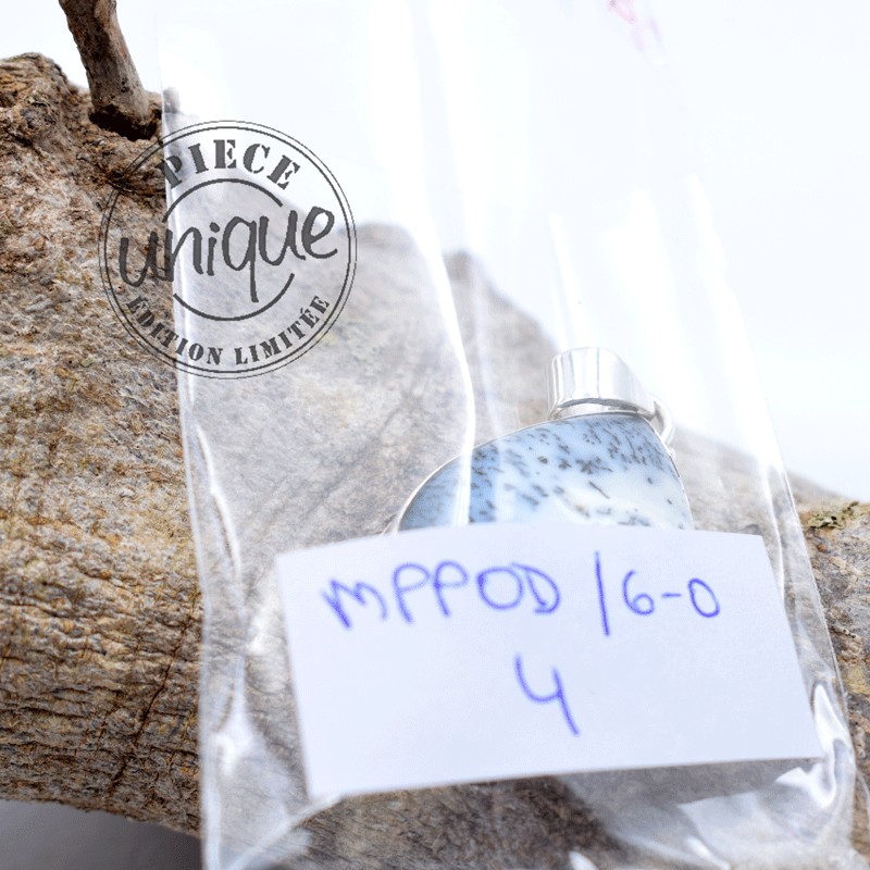 Beau pendentif en opale dendritique serti argent de 925.
