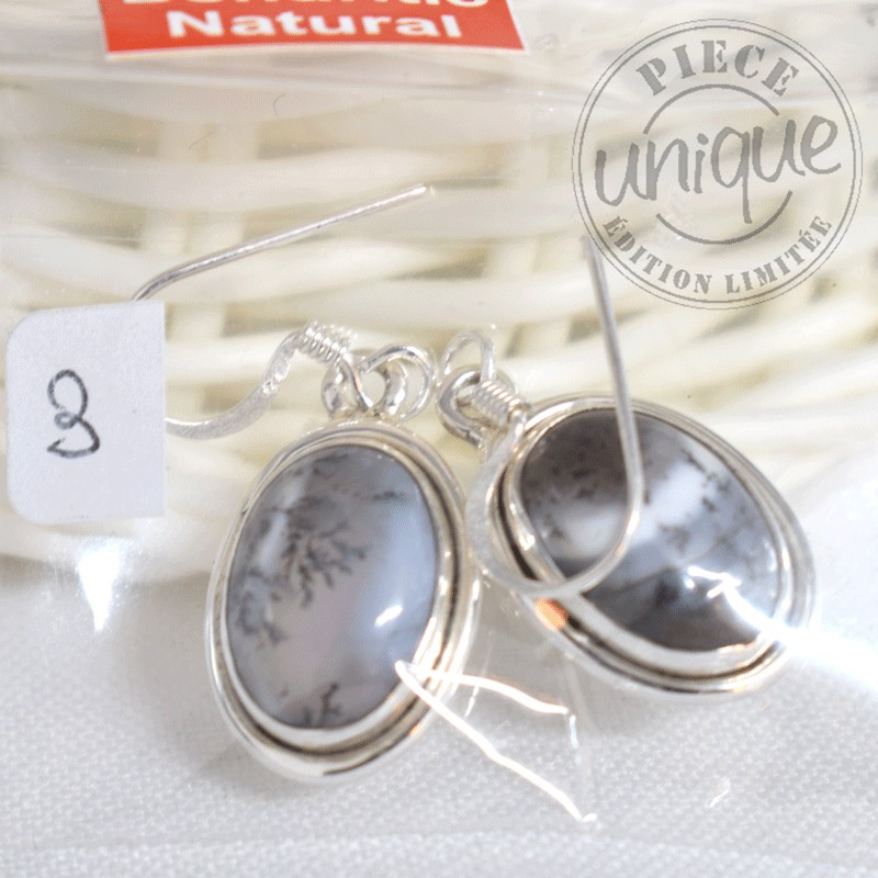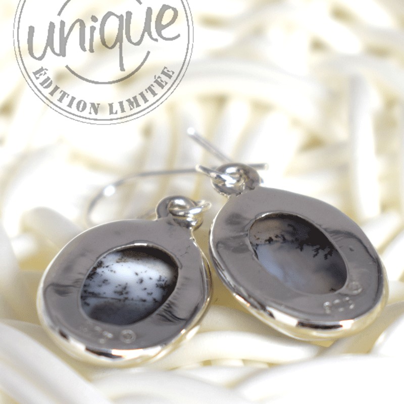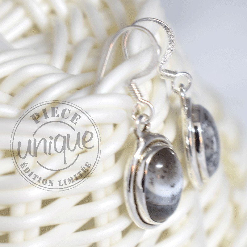 Boucle d'oreilles en Opale dendritique sertissage argent 925