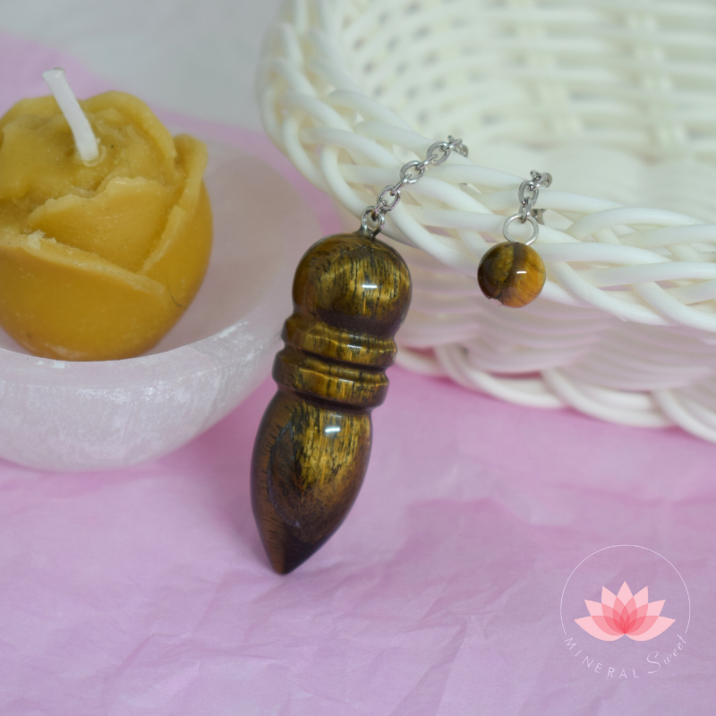 L'Œil de Tigre est un minéral de la famille des quartzites, un dioxyde de silicium, de composition chimique: SiO2. Il est dit de cette pierre qu'elle est fibreuse, d'où son aspect chatoyant.