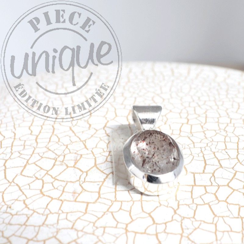 Bel pendentif en Super Seven facetté et serti argent de 925