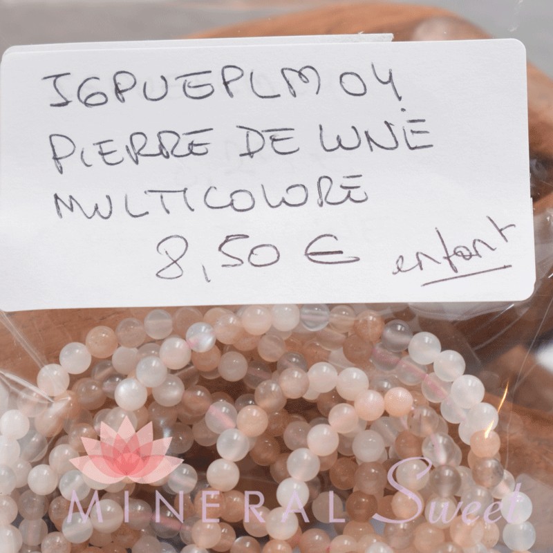 Bracelet enfant Pierre de Lune multicolore perles rondes 4mm